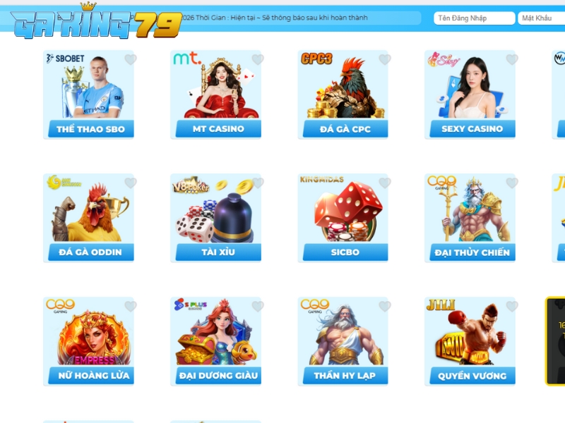 Một trong những yếu tố làm nên sức hút của GAKING79 chính là kho sản phẩm cá cược đa dạng, được đầu tư bài bản cả về nội dung lẫn chất lượng trải nghiệm. Dưới đây là những sảnh game tiêu biểu mà anh em không nên bỏ lỡ.